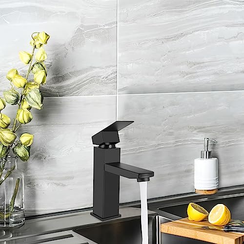 【Qualità superiore】 Questo rubinetto da bagno a cascata nero opaco ha una struttura in ottone massiccio che garantisce alta qualità e durata, la superficie della vernice nera multistrato resiste alla ruggine e alla corrosione. Cartuccia ceramica