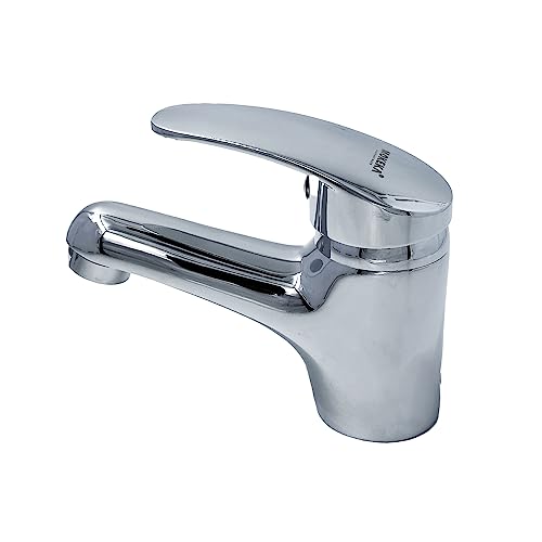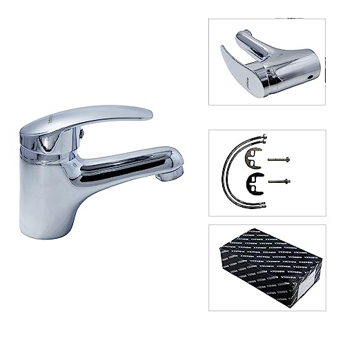 Rubinetto per lavabo, MOKEKA Rubinetto da bagno, Miscelatore Monocomando Bagno con Flessibili da 60 cm, Acqua Calda Fredda cromato