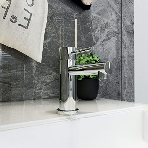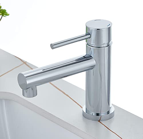 Rubinetto per lavabo in ottone cromato. Rubinetto per bagno, acqua fredda e calda, miscelatore monocomando per lavandino, cartuccia 35 mm (base normale)