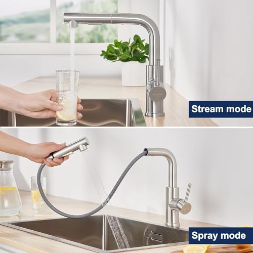 Rubinetto Lavello Cucina con Doccetta Estraibile, Lonheo Miscelatore con Spruzzatore a 2 Funzioni, girevole a 360°, Acciaio Inox