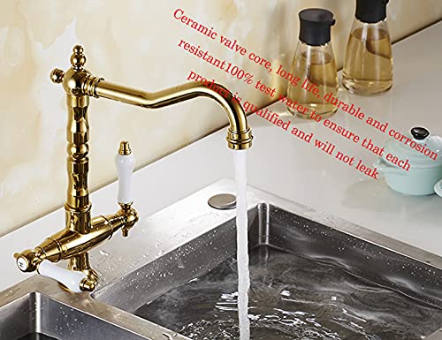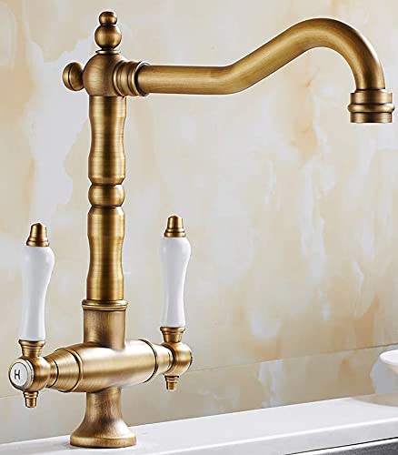 Rubinetto per lavello da cucina tradizionale,rubinetto miscelatore caldo e freddo a doppia maniglia in ottone massiccio,rubinetto girevole a 360 °,Rubinetto classico argento antico bronzo nero (1)