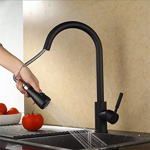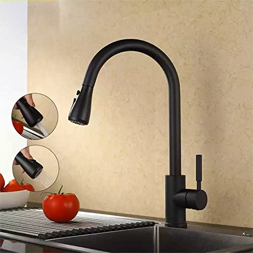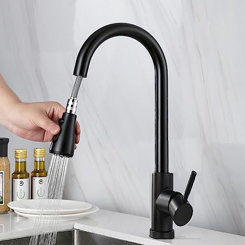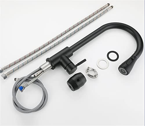 【Due modalità di spruzzo】Nero rubinetto da cucina con testa a spruzzo può passare da una modalità di spruzzo all'altra semplicemente ruotando la testa a spruzzo: tra l'acqua frizzante e l'acqua della doccia. Il rubinetto da cucina è progettato con un'unica leva per controllare facilmente la temperatura e il flusso dell'acqua, risparmiando acqua. È possibile lavare rapidamente frutta, verdura e vari utensili da cucina.