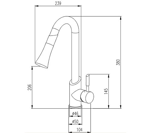 Miscelatore da cucina in ottone e zinco, con bocca di erogazione girevole e doccetta.