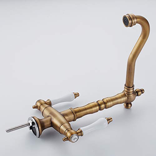 Rubinetto Miscelatore Cucina Rubinetto Elegante Alto Monocomando Cascata con Doppia Manico Lavello Retrò Ottone per Cucina