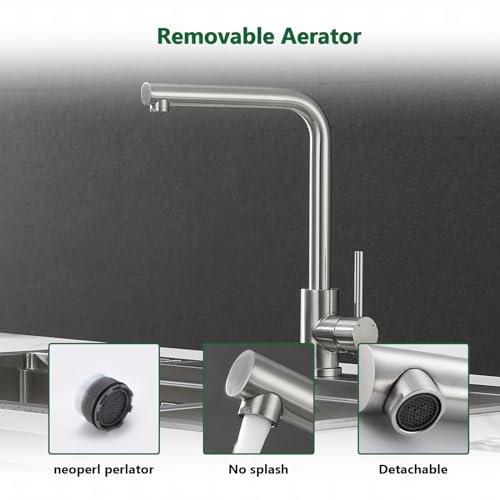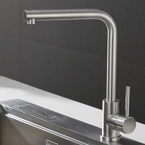 Rubinetto Miscelatore per Cucina, Kelleria Ruotabile a 360° Realizzato in Acciaio Inossidabile, Monocomando ad Alta Pressione con Connessioni G3/8", Facile da Installare Accessori Inclusi, Spazzolato