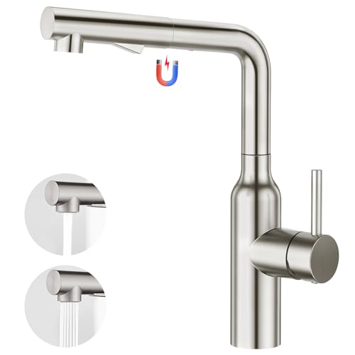 CREA Rubinetto Miscelatore per Lavello da Cucina con Doccetta estraibile, Monocomando per Lavello Girevole a 360° con Doccetta Magnetico, in Acciaio inossidabile spazzolato opaco