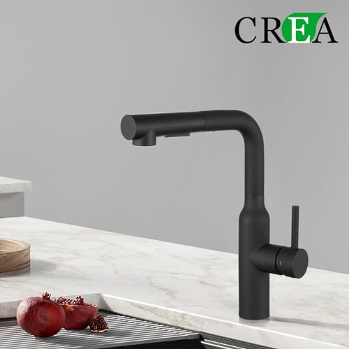 CREA Rubinetto Miscelatore per Lavello da Cucina con Doccetta estraibile, Monocomando per Lavello Girevole a 360° con Doccetta Magnetico, in Acciaio inossidabile nero opaco