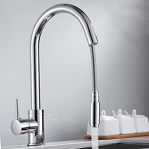 Rubinetto miscelatore monoblocco cromato, per lavello della cucina, a un foro, con doccetta estraibile, monocomando, con raccordi standard UK type 1