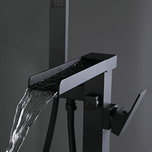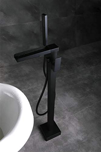 Rubinetto miscelatore per vasca da bagno nero opaco autoportante monocomando a cascata per vasca da bagno con spruzzatore per doccia portatile a pavimento