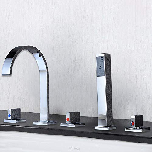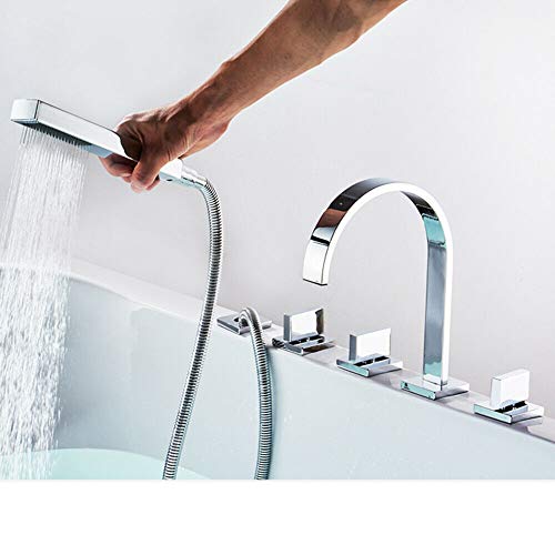 Rubinetto moderno per bordo vasca da bagno, 5 fori, bordo vasca con doccetta