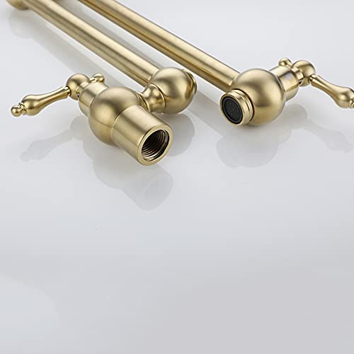 Rubinetto per Riempimento Pentole, Rubinetto da Cucina in Ottone A 2 Maniglie A Parete, Rubinetti Singolo Freddo Pieghevole con Rotazione A 360 °, con Bracci Oscillanti A Doppio Snodo,Brushed