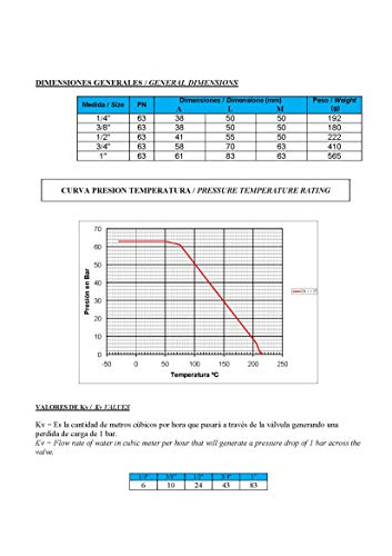 Il passaggio interno del rubinetto è dritto e permette alla valvola a sfera ad alta pressione ad alte prestazioni un flusso ottimale e ha quindi una bassa resistenza al flusso. La temperatura di funzionamento ammessa è di -25oC / 180oC e la pressione massima di esercizio è di 63bar.