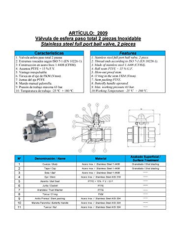 Il rubinetto a sfera in acciaio inox è realizzato in acciaio inossidabile CF8M, questo rubinetto è robusto e durevole. Il rubinetto ideale per il settore chimico, dell'industria alimentare o come valvola di intercettazione di alta qualità in casa o in giardino. Il distributore di acqua ha una filettatura interna su entrambi i lati a norma ISO 7-1 (EN 10226-1) e due porte con passaggio completo.