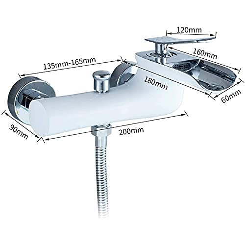 Rubinetto Vasca Bagno Bianco e Cromo, Cascata Manico Singolo Rubinetto Doccia Montaggio a Parete Rubinetto per Vasca da Bagno con Doccetta 3 Funzione, Tubo Doccia 150cm