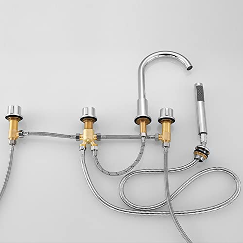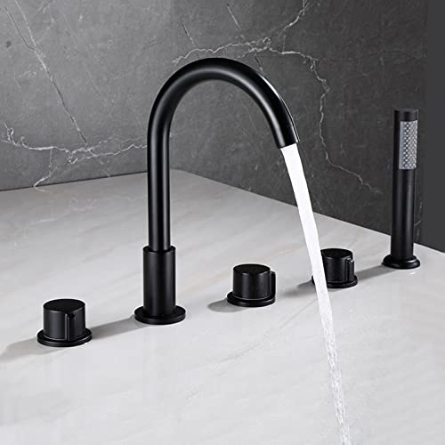 Rubinetto con 5 Fori per Vasca da Bagno Bifunzionale Miscelatore Bordo Vasca da Bagno Caldo e Freddo Rubinetto per Vasca con Doccetta Rubinetteria Bagno