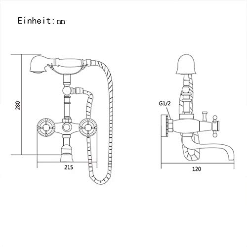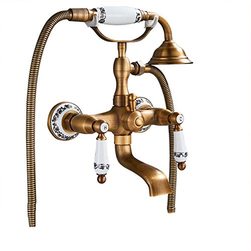 Rubinetto Per Vasca Da Bagno Con Doccetta, 2 Manopole Vasca Da Bagno Miscelatore, Rubinetto Miscelatore Vasca Esterno Con Supporto E Flessibile 1.5M, Sistema Doccia a Parete, Finitura Ottone Anticato