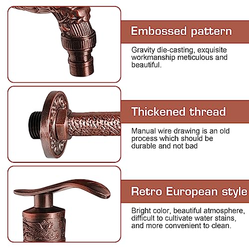 【Materiale di alta Qualità】: Il rubinetto da giardino in bronzo rosso antico a forma di drago è un prodotto di alta qualità, caratterizzato da prestazioni elevate e lunga durata, è robusto e durevole. Rubinetto vintage si fissa a parete risparmiando spazio e arredando l'ambiente.