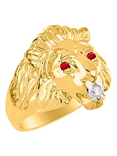 Rubino e diamante testa di leone anello oro giallo 14 K Band