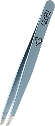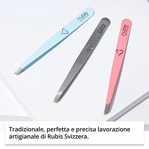 Queste pinzette per sopracciglia sono realizzate a mano da Rubis in Svizzera in 45 fasi di lavoro e fornite in una piccola custodia in acrilico richiudibile.