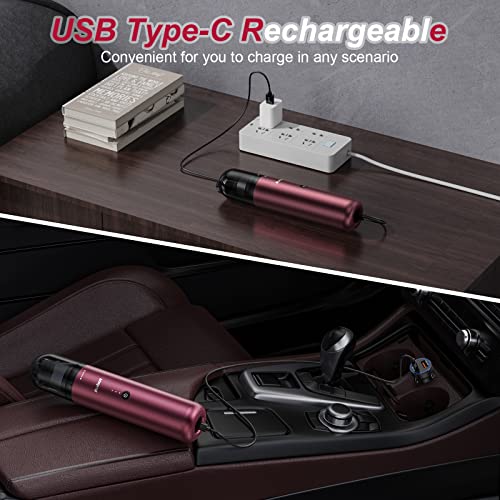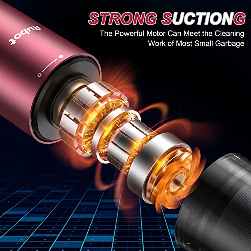 RUBOT Aspirabriciole Senza Fili, Aspirapolvere Portatile 16000Pa 4x2000mAh Mini Aspirapolvere e Triplo Filtro Tempo di Lavoro 25 Min Ricarica USB Per Casa/Auto (Rosso)