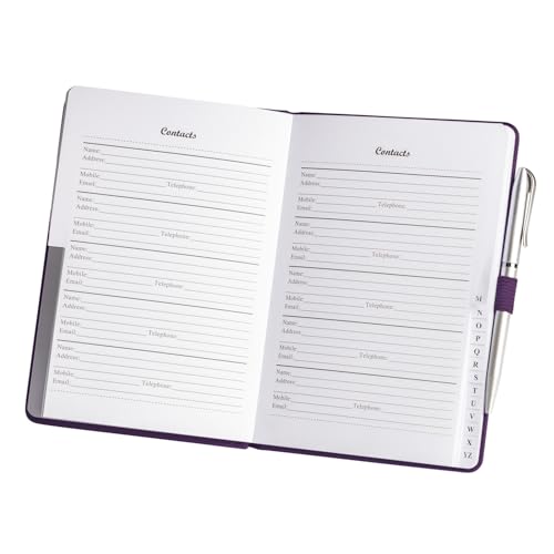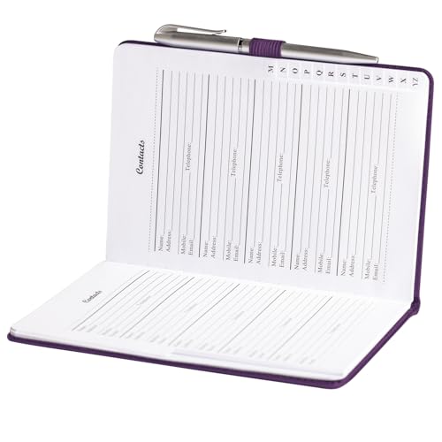 Rubrica telefonica con indice dalla A alla Z, formato A5, con copertina rigida e penna, per casa, ufficio, lavoro, viola (lingua italiana non garantita)
