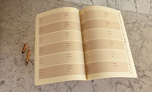 RUBRICA TELEFONICA in VERA PELLE, ROSSA con fogli di CARTA VERGATA USOMANO AVORIO 100 GRMQ. (cm 17 x 24, 192 pagine). Numeri di telefono, Mail, Indirizzi. Cartoleria artigianale Made In Italy Quotus