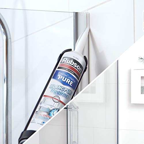 Confezione - Rubson Mastice Bagno & Cucina Pure Bianco Igiene, a base di Silicone, Cartuccia Mastice 280 ml, Bianco, 1 Cartuccia = 15 metri di Guarnizione ca.