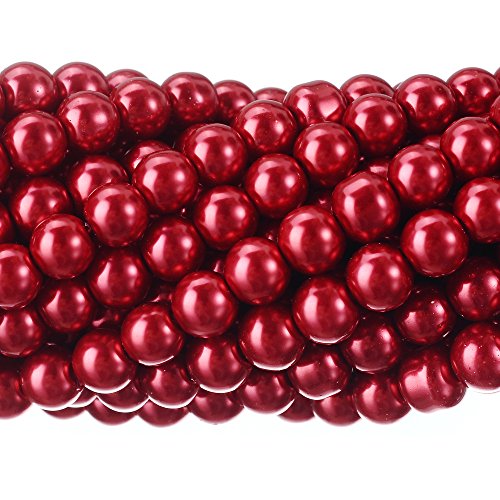 RUBYCA 200Pcs Ceca Piccolo Raso Lustro Perle di Vetro Rotonde Perline FAI DA TE Gioielli Fare 8mm Bordeaux Rosso