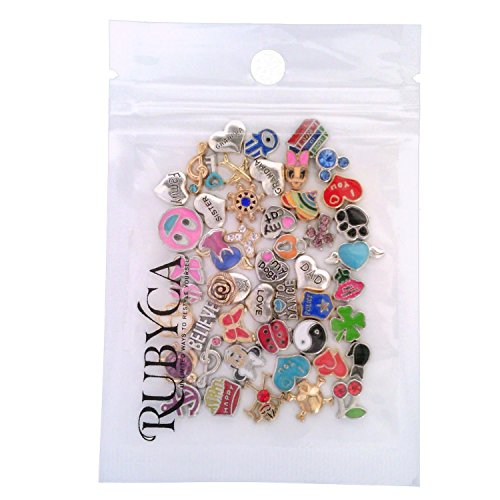 Rubyca all' ingrosso lotto galleggiante ciondoli per fai da te vetro Living memory Locket mix color oro argento, 50 pezzi
