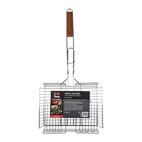 RUECAB 1089 Rack di Barbecue Doppia Regolabile Acciaio Inox Manico Legno Argento 6 x 33 x 69 cm