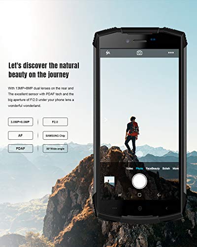 Tre telecamere, Extreme Beauty - S55 equipaggia le doppie fotocamere posteriori, un obiettivo ausiliario da 8,0 MP, una fotocamera principale 13,0 MP con PDAF e un obiettivo frontale da 5,0 MP con angolo di 80 °, L'eccellente sensore con tecnologia PDAF e grandangolo 88 ° in il telefono robusto lo rende perfetto per la fotografia subacquea.