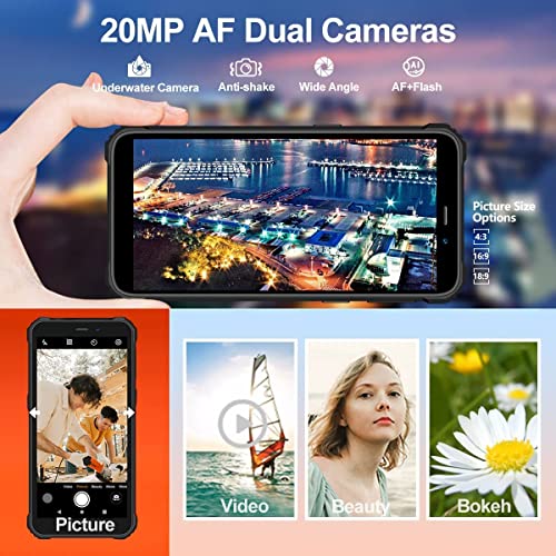 【20MP AF fotocamera principale e fotocamera subacquea】OUKITEL WP20 cellulari ha una doppia fotocamera posteriore avanzata che supporta la fotocamera subacquea e offre funzioni più professionali, come tre opzioni per le dimensioni dell'immagine (4: 3, 16: 9, 18: 9) e gli stili di fotografia (grandangolo, bokeh, bellezza, mono, modalità notturna). Vi aiuterà a catturare un momento meraviglioso e a immortalare i vostri preziosi ricordi nel miglior modo possibile.