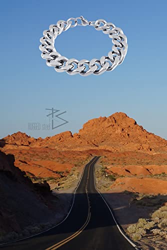 RUGGED STEEL Bracciale in acciaio inox massiccio, larghezza 14 mm, chiusura a moschettone, colore argento lucido, 17-26 cm (con scatola per gioielli), Acciaio inossidabile, Senza pietra.