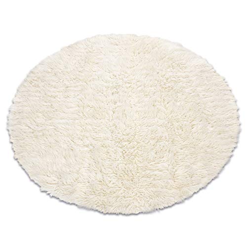 Rugsx Flokati Tappeto in Lana Greca, per Il Salotto, la Camera da Letto, la Camera dei Bambini, Colore Naturale, Alta qualità, Cerchio Bianco 140 cm