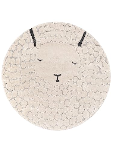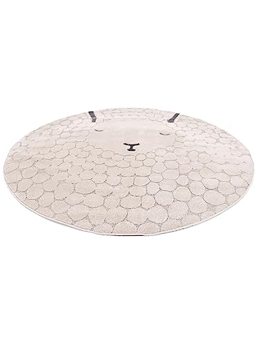 RugVista Lollo Lamm, Lollo Lamm, Tappeto per cameretta Bimbi, ∅ 100 cm, Tappeto per Bambini, Tappeto da Gioco, Design Moderno, Fatto a Macchina, Pelo Corto, No Sostanze nocive, Grigio/Beige,
