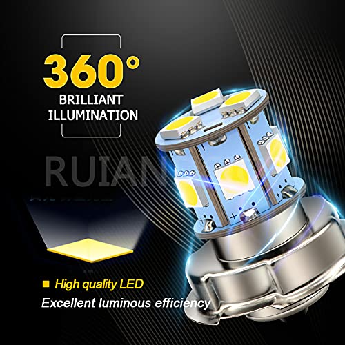 Ruiandsion 2pcs 10-80 V P26S LED Lampadina Super Bright 5050 9SMD Chipset 6000K White LED Lampadina per moto Faro