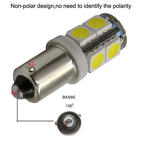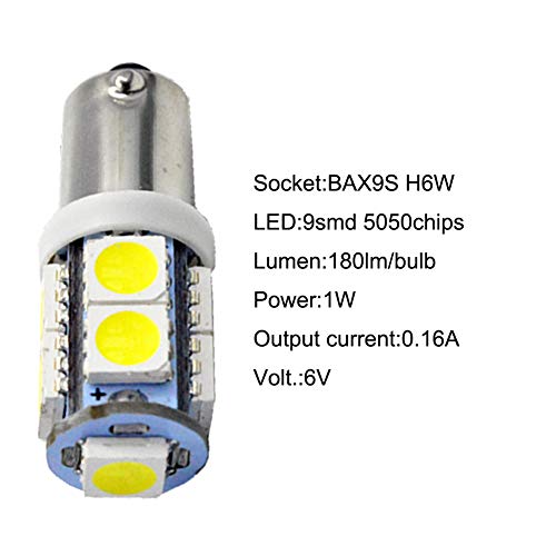 Ruiandsion 2pcs BAX9S H6W 64132 38161 LED Lampadina 6V Super Bright 5050 9SMD Chipset LED Indicatori di direzione di lettura Lampadina di parcheggio, bianco