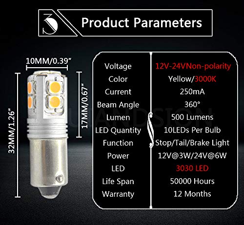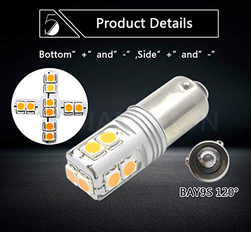 Ruiandsion BAY9S 2 luci LED Canbus H21 W 12-24 V, super luminose, Chipset 3030 10SMD, luce gialla, per indicatore di direzione auto, luce di retromarcia, senza polarità