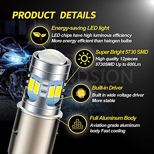 Ruiandsion 2 lampadine LED BA20D per fari da moto, 6 V, 12 V, 6 - 24 V, super luminose, 5730, 12 SMD, lampadine LED H6, fari con anabbaglianti, bianco