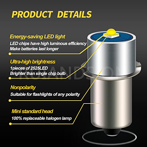Ruiandsion - 10 lampadine LED P13.5S, 3 W, 3 V, 200 lm, di ricambio per torcia, torcia e faro, colore: bianco