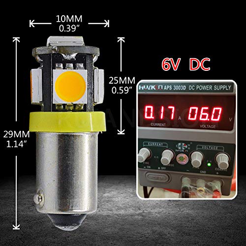 Ruiandsion - 4 lampadine LED BA9S 6 V 5050 5SMD per luci di targa auto, luci laterali interne, colore: giallo/ambra