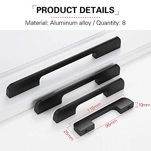 Ruiao - Maniglie spesse per armadietti, in lega di alluminio massiccio, maniglie per cassetti con viti per mobili da cucina, camera da letto (8 fori centrali: 96 mm)