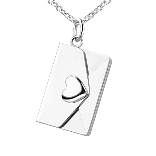 Ruibeila Personalizzato Lettera d'Amore Busta Collana Locket, Custom Secret Busta Collana con Messaggio Nascosto Anniversario Regali di Compleanno Presente per Donna Ragazza (argentato 3)