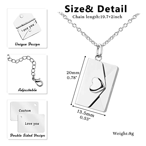 FLEXIBLE PERSONALIZED - A love letter envelope necklace can customize your secret/names/special date/''love'' or ''thank you'' or any other text as you want.Click "Customize Now" to custom personalized name necklace you want. Options about the name(word or letter), material, color, font and chain length, etc.