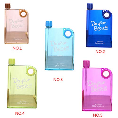 Ruiboury - Borraccia piatta da 380 ml, formato A5, in plastica, trasparente, a prova di perdite, per sport, viaggio