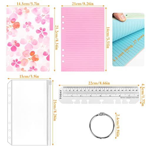 Ruicaifu 50 Fogli Raccoglitore ad Anelli A5 per Ricarica Colorata per 6 Fori 6 Divisore per Raccoglitore 3 Borse di File A5 6 Anelli del Libro 1 Righello per Agenda Diario Notebook
