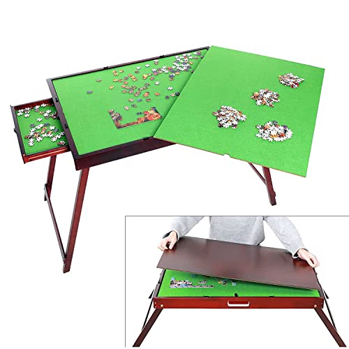 ♦ Nessun assemblaggio richiesto. Realizzato in legno di alta qualità per un uso a lungo termine. Questo tavolo puzzle è realizzato a mano, portatile e resistente. La luce e il legno duro sono ricoperti da una spessa superficie di vernice scura. Tavolo inclinabile in flanella antiscivolo. La recinzione in legno può prevenire la caduta del puzzle e il manico in metallo e le gambe pieghevoli rinforzate consentono una comoda conservazione o viaggio.
