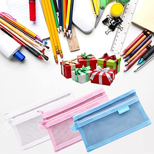 RuiChy 3 Pezzi Cerniera Astuccio a Rete, Multiuso Doppio Strato Trasparente Nylon Cancelleria per Ufficio Borsa di Immagazzinaggio Cartella di File Organizzatore di Ricevute Borsa per Cosmetici
