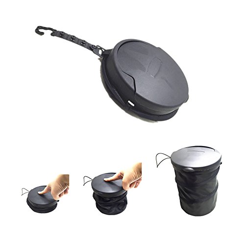 Risparmio di spazio - Design: corpo pieghevole per praticità (ha dimensioni salvaspazio di ripiegato: 16 x 4,6 cm). Offre il gancio con fibbia regolabile in altezza nella appendere questo bidone della spazzatura in auto.