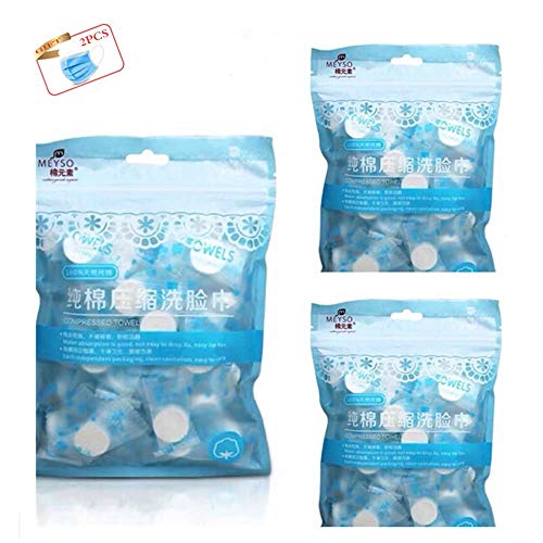 Ruihua 3 confezioni di asciugamano monouso non tessuto compresso per viso, espandibile, facile da trasportare, accessori da viaggio in cotone compresso, mini asciugamano